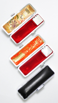 最高級なめし牛革ケース 天丸用 【黒/銀枠/朱竹・鶴亀】 法人印鑑ケース 16.5mm・18.0mm兼用