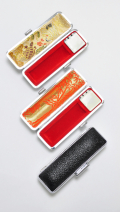 高級牛もみ革ケース 寸胴用 【黒/銀枠/朱竹・鶴亀】 法人印鑑ケース 16.5mm・18.0mm兼用