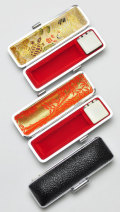 高級牛もみ革ケース【黒/銀枠】 朱竹・鶴亀 個人印鑑ケース 18.0mm