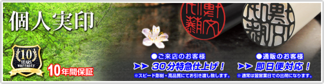実印とは役所に登録した印鑑のことで、契約書、不動産取引、遺産相続など数々の 公的重要書類に捺印するとても大切な印鑑です。基本的に姓名を彫りますが女性は 名のみ彫刻することもあります。